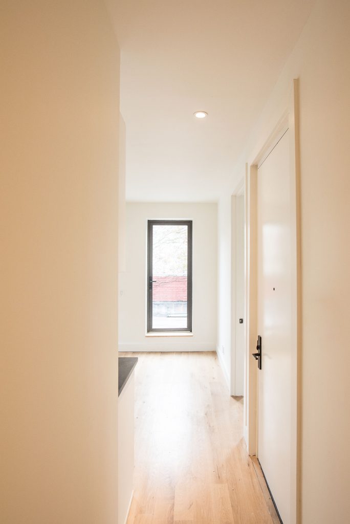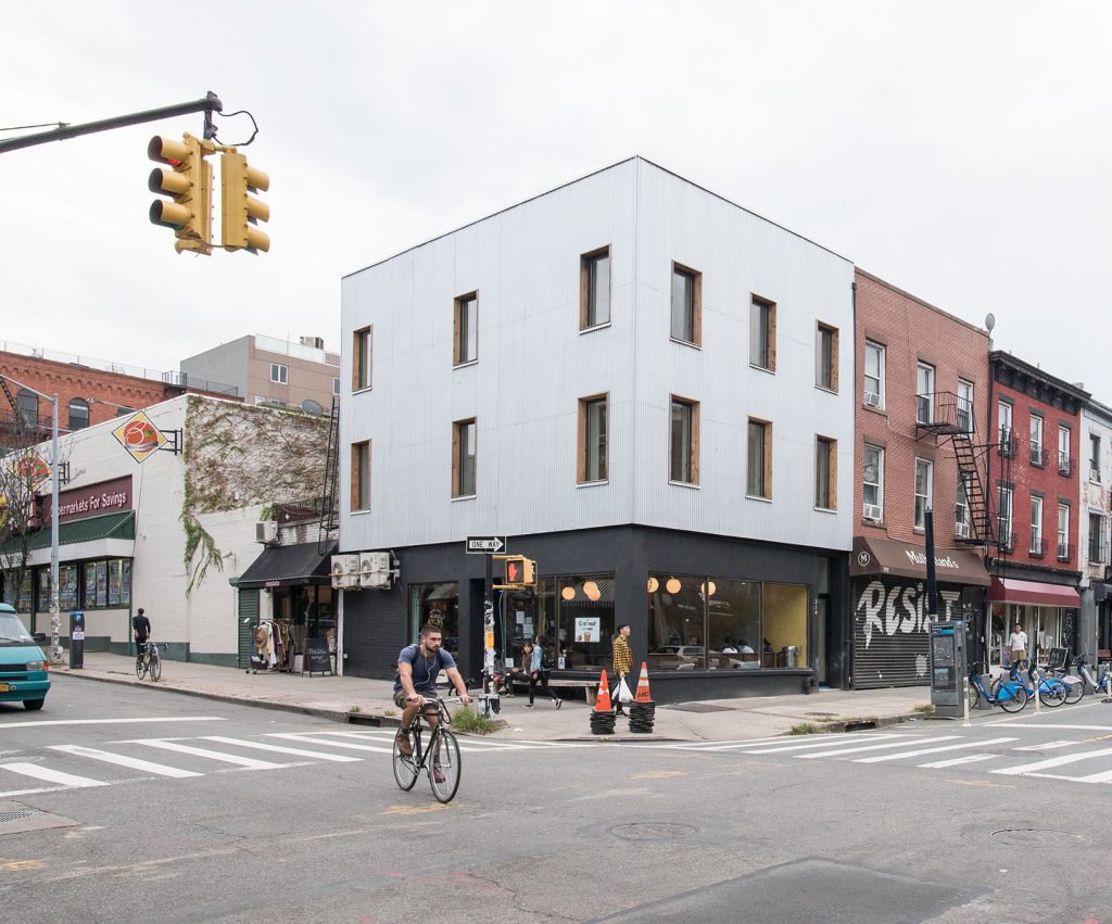 We worked closely with developer ASH on this top-to-bottom renovation of an existing 3-story mixed use building in Williamsburg, Brooklyn. The apartments were completely reconfigured and updated with new fixtures, finishes and appliances. An existing unoccupied roof was converted into an outdoor space and the deteriorated facade was re-clad with metal panels. The existing windows were replaced with European style casement windows with natural wood surrounds to complement the new facade.